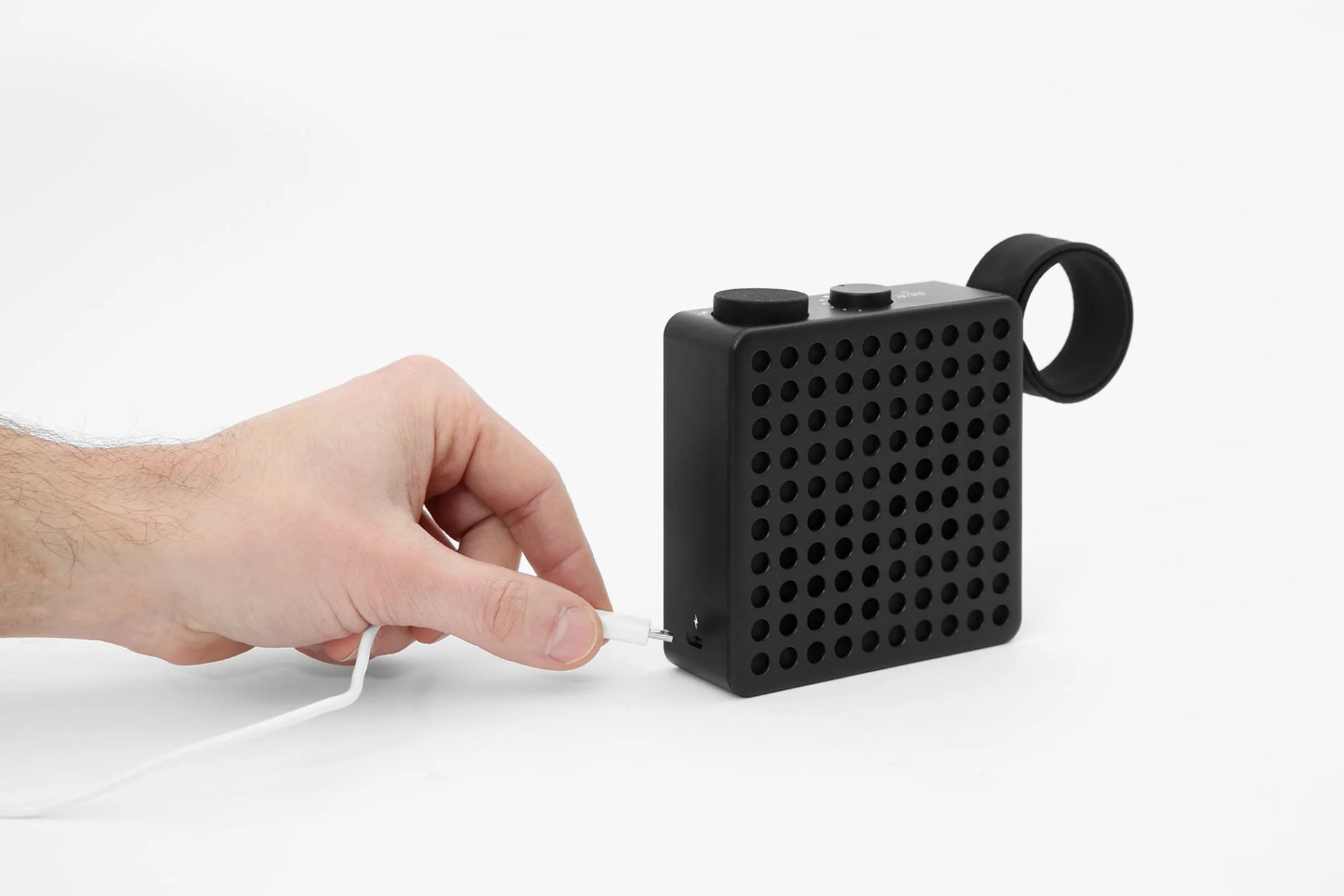 The unique feature of The Monkey radio / speaker is the ingenious snap-on antenna with its spring metal core. It offers two iconic positions, enabling The Monkey to be used in two different ways. With the antenna in straight position it is a static object. And it playfully becomes your mobile companion with the antenna clinging around handles, tubes and any other branches of the urban jungle.